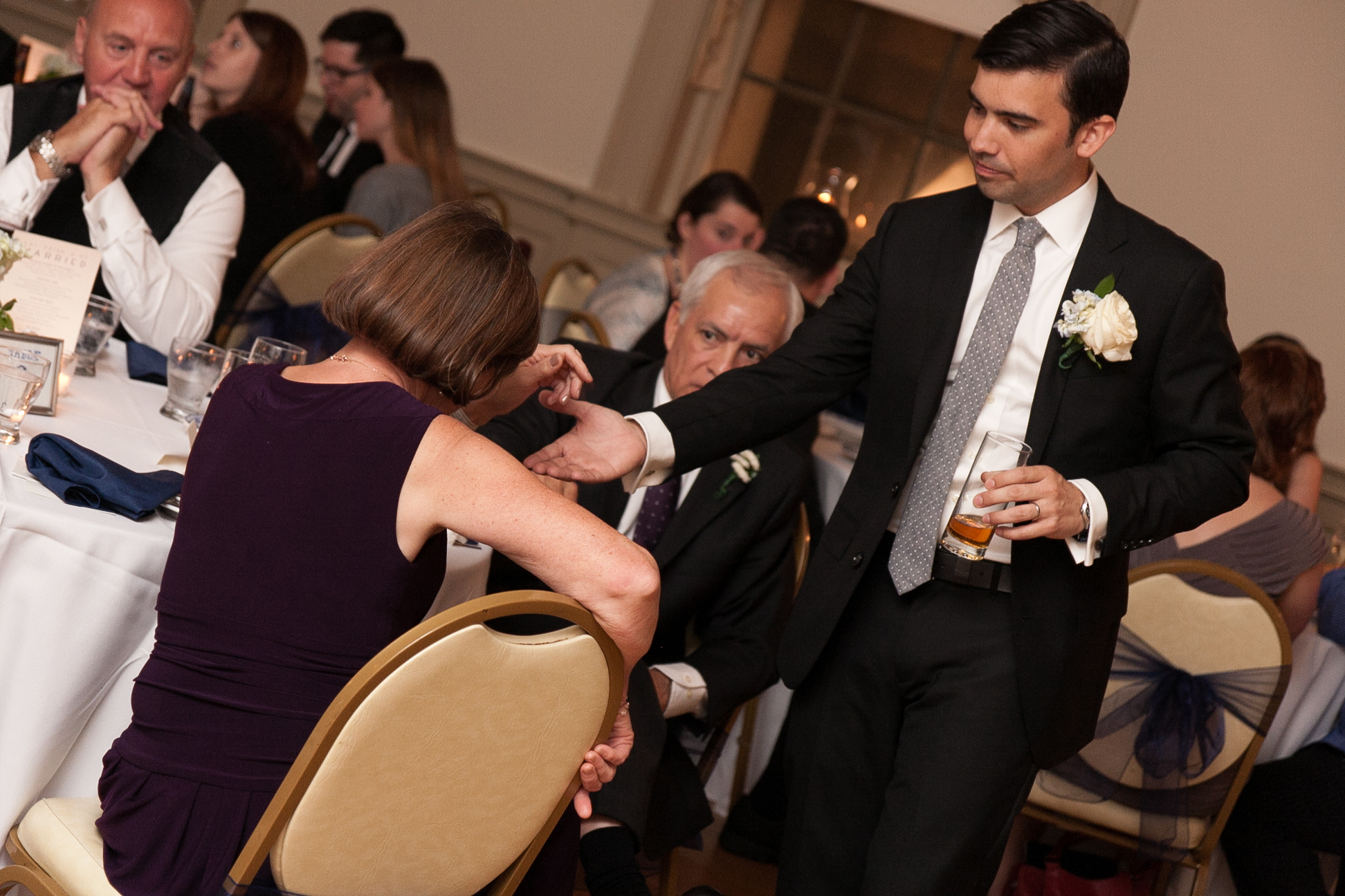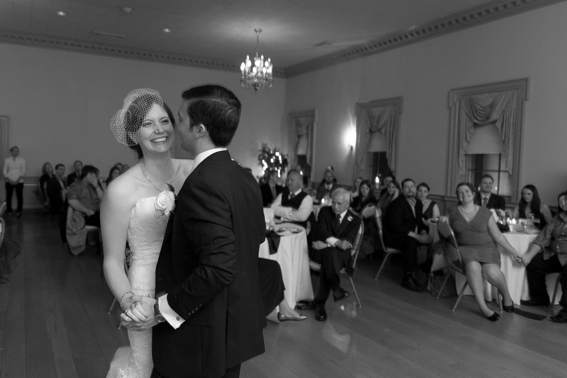 We had a cocktail style reception in which our guests could help themselves to passed appetizers and heavier appetizers at two stations. We wanted to encourage people to be up and down, grabbing food and mingling (and breaking it down if the mood struck), so we kept the playlist upbeat. Toward the middle, we snuck in a few romantic slow songs but then planned the playlist to progressively build from the half way point so that guests would be ready dance after dinner.