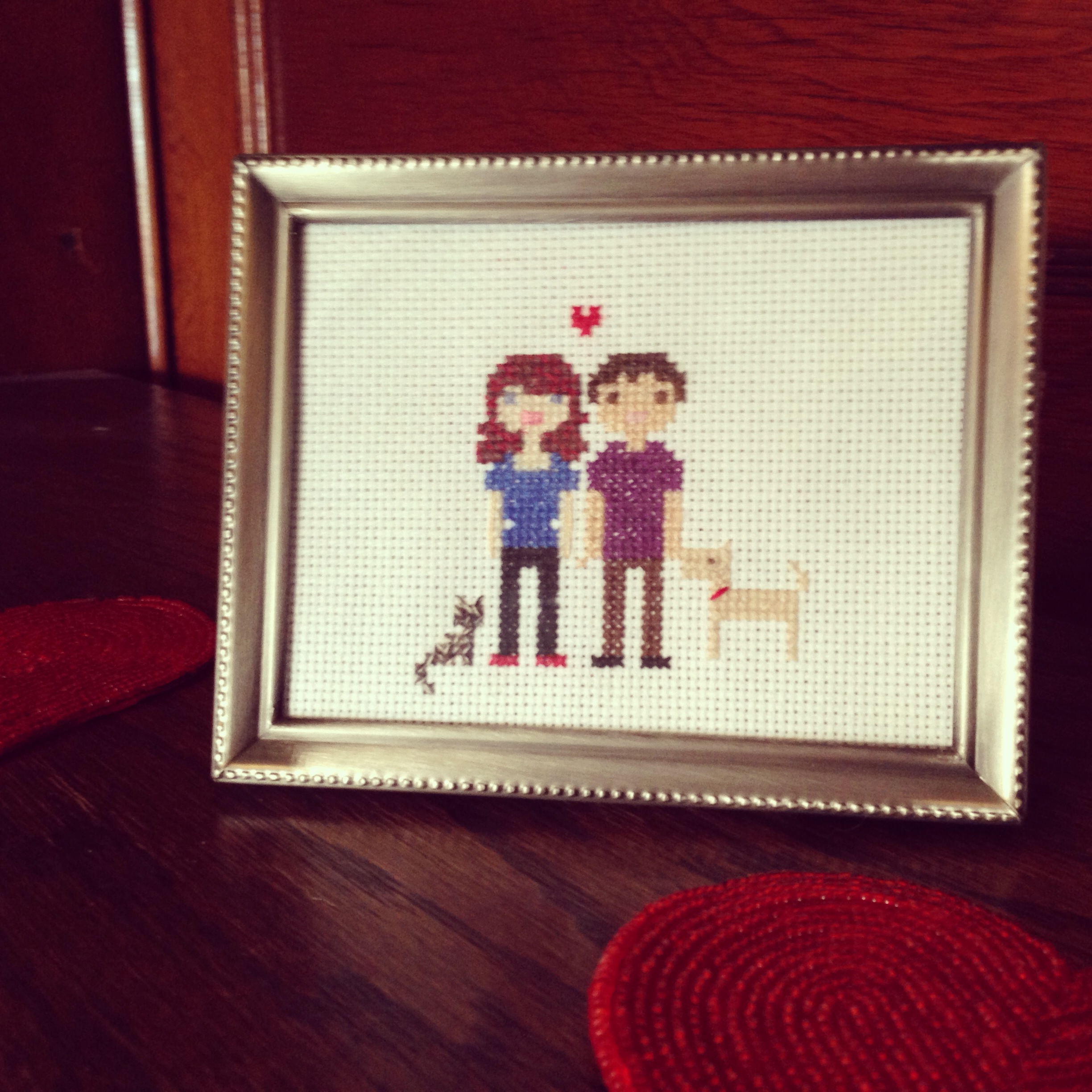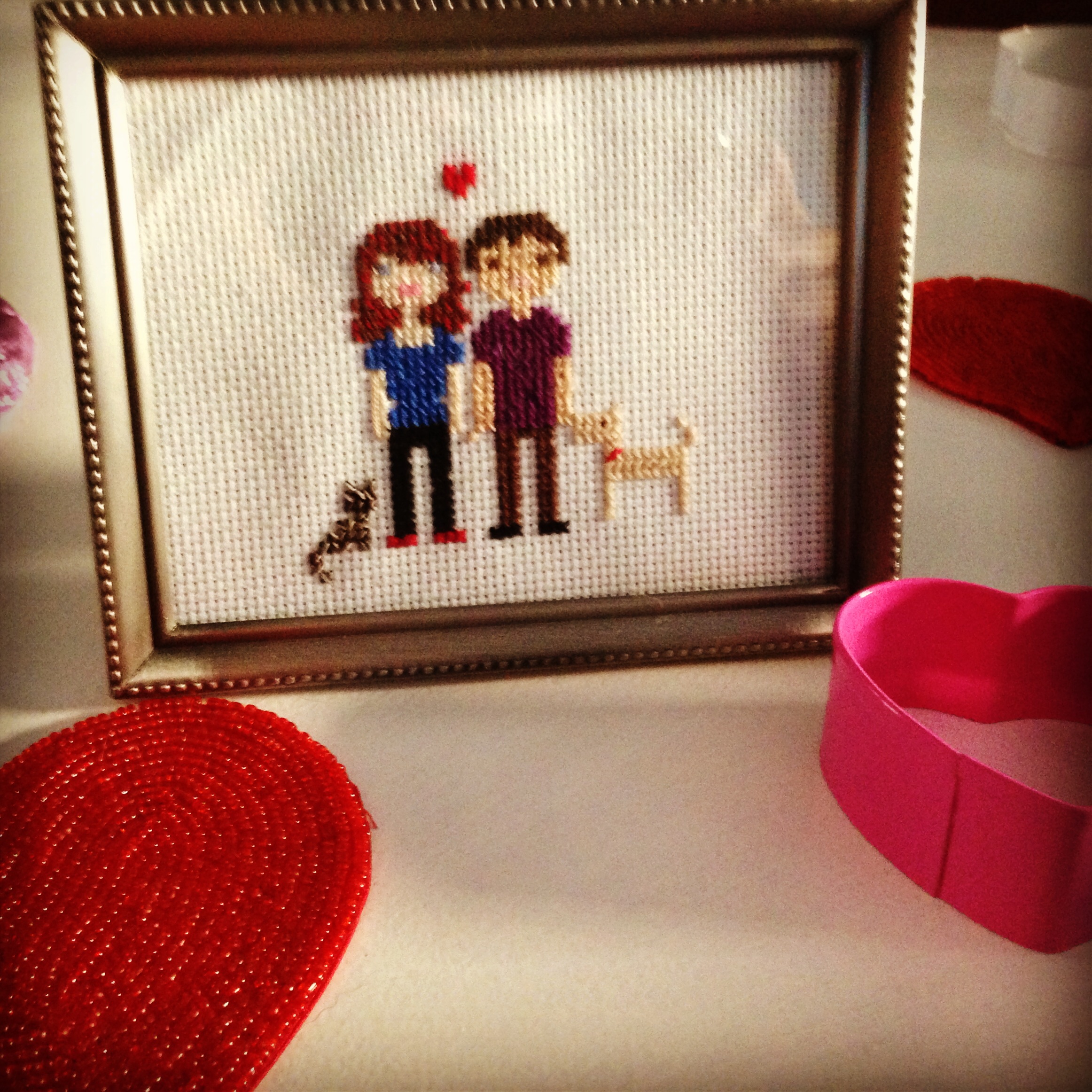 This year I decided to send my valentine wishes in my most beloved craft medium: cross stitch. Love is in the air. In my February issue of Martha Stewart Living, I noticed a nod to a back issue which provided instruction for cross stitching one’s family. I tracked down the patterns and voila! Cross stitch is a really easy craft (if you can count you can cross stitch), so I recommend giving it a try.