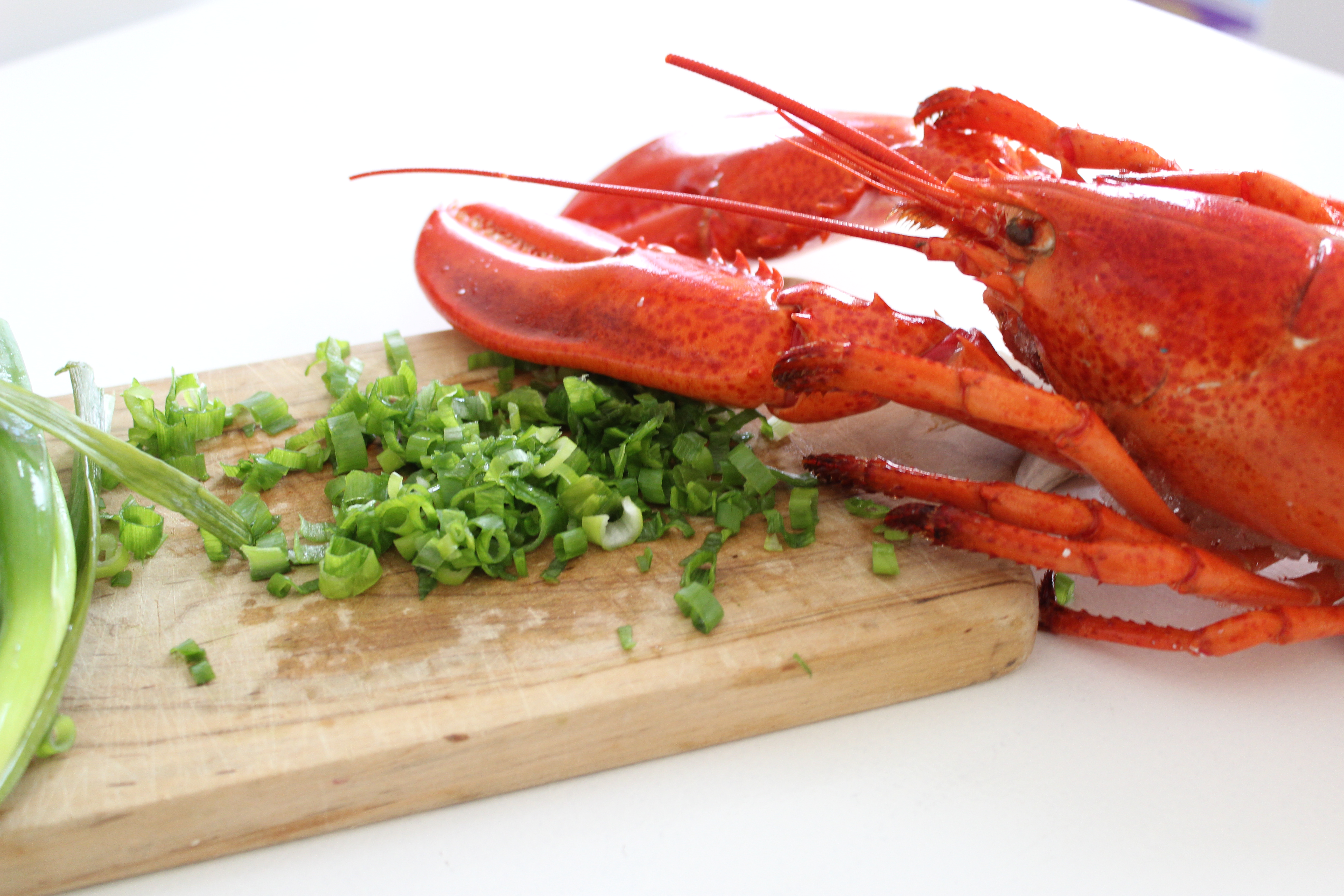 I consulted with my aunt, a long time Cape Cod dweller, for her personal recipe. She confessed that the recipe is embarrassingly easy as there are only four ingredients: lobster, chopped green onions, mayo, and a few turns of a pepper mill. I must admit that I had the grocery store do the dirty work by steaming (and killing) my lobster for me. I did, however, remove the shell myself. This nice man from Nova Scotia instructed this process as I extracted the meat with my bare hands. The (dead) lobster didn’t go down without a fight as I ended up with juices all over me (now I know why people wear bibs) and a scratch on my wrist. The amount of onions and mayo to add depends on the amount of lobster meat; my 1.5 pound lobster yielded about 1.5 cups of chopped meat. I added 1/3 cup of green onions and a heaping tablespoon of Miracle Whip (my aunt’s secret ingredient instead of mayo).